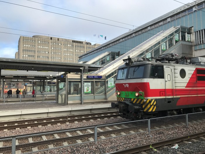 Aamulla omalla autolla ensin Turun rautatieasemalle tai paremminkin radan toiselle puolelle, josta ylikulkusiltaa pitkin itse asemalle. Vähän vilpoinen ilma mutta rauhassa sai kävellä ja tunnustella harmaata aamua kun oli riittävän ajoissa lähtenyt kotoa. Tänään ei tarvinnut lähteä kukonlaulun aikaan vaikka matkaa olikin edessä. Eikä edes satanut vaikka sekin mahdollisuus oli ilmeinen pilviä tarkastellessa. Normaali aamu.